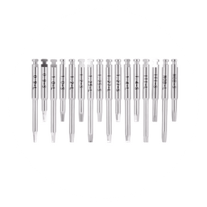 Viene equipado con un kit completo de 16 drivers (cortos y largos). Esta cualidad lo hace compatible con la gran mayoría de los sistemas de implantes del mercado (como 0.9, 1.2, 1.25, IT, etc.)
