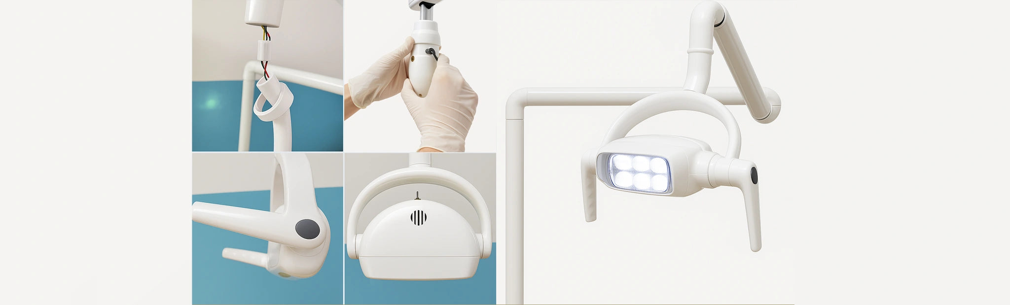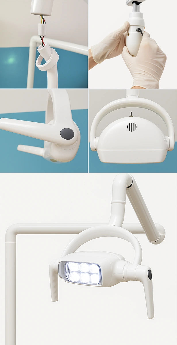 Luz LED de 6 focos (8000–30000 LUX) con sensor de inducción para control sin contacto. Ideal para procedimientos dentales precisos.
