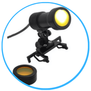 Puedes adquirir junto con él el filtro para la lámpara frontal, el filtro asegura que las resinas no se polimericen prematuramente durante los procedimientos.