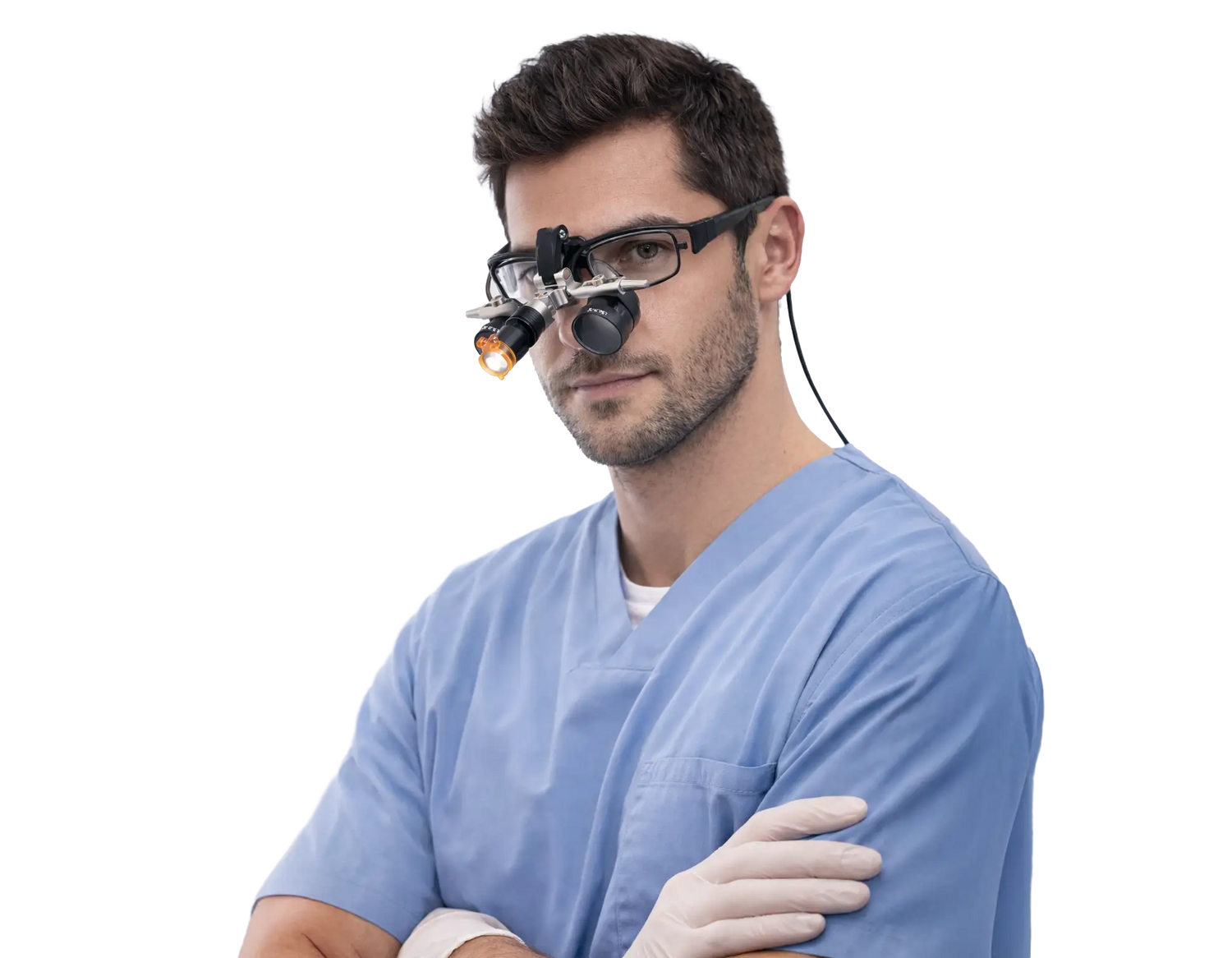 Lupa odontológica con iluminación LED de 5W e intensidad de hasta 40.000 lux. Garantiza diagnósticos precisos y ergonomía en tu consultorio. Batería de larga duración.